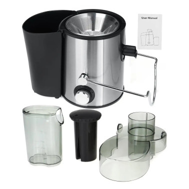 Cu un recipient de 500 ml pentru suc, lame din oțel inoxidabil și un design elegant în culori negru cu gri, acest storcător este perfect pentru uz casnic zilnic. Datorită tubului de alimentare cu diametru de 65 mm, poți introduce bucăți mai mari de fructe, economisind timp la tăiere.