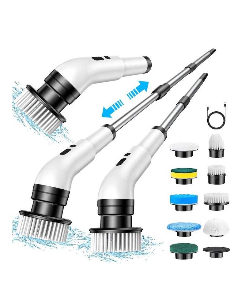 Perie Electrică Rotativă pentru Curățenie – 9 Capete, 450 RPM, 2 Viteze, Mâner Extensibil și Încărcare USB