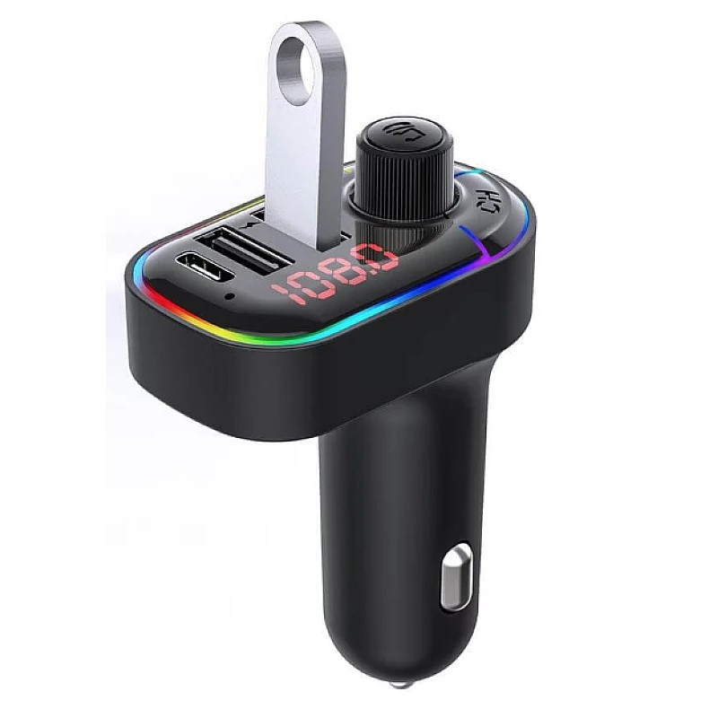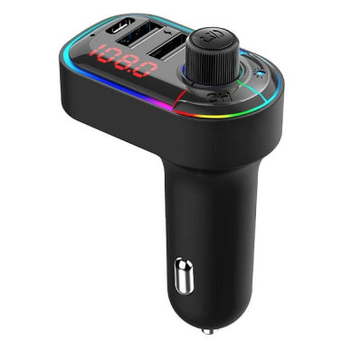 Modulator Auto FM Bluetooth 5.0 cu Încărcare Rapidă, Microfon, Afișaj LED și Lumină RGB