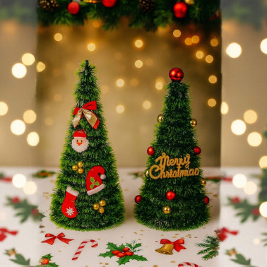 Decorațiune de Crăciun 48x18cm Brad Artificial cu Globuri, și Ornamente “Merry Christmas”,diferite modele