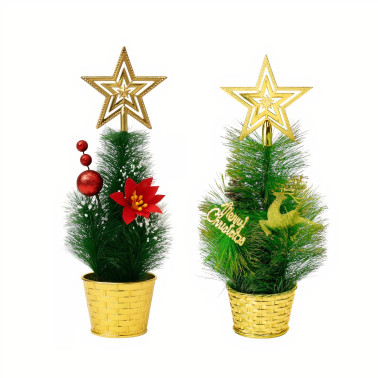 Brad Decorativ 40cm de Crăciun, în Ghiveci Auriu cu Stea Strălucitoare si Ornamente