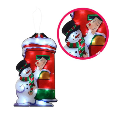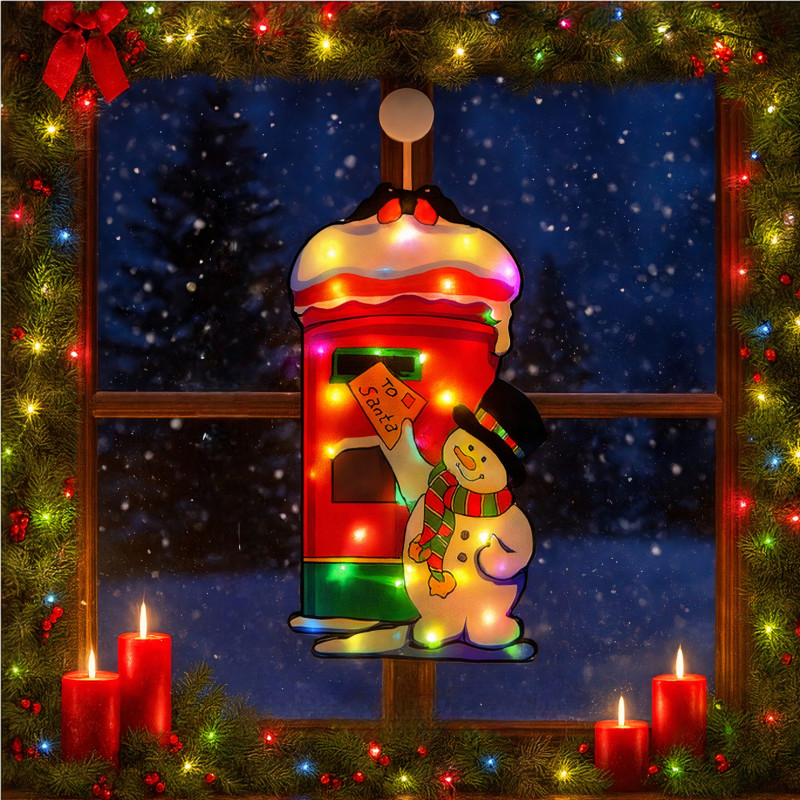 Decoratiune de geam "Om de Zapada cu Cutie Postala" pentru Crăciun 40cm, LED Multicoloră, Interior și Exterior