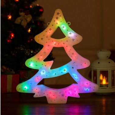 Decorațiunea este echipată cu LED-uri multicolore ce oferă o combinație spectaculoasă de nuanțe: roșu, verde, albastru, galben și mov. Lumina se schimbă treptat, creând un efect vizual feeric și o atmosferă plină de energie pozitivă.
