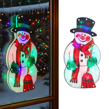 Decoratiune de geam "Om de zapada" pentru Crăciun 40cm, LED Multicoloră, Interior și Exterior