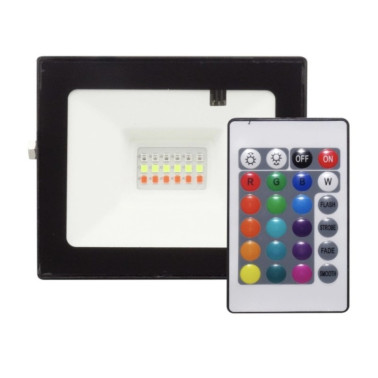 Echipat cu 18 LED-uri SMD, noul model de Proiector Cu Led 10W RGB Cu Telecomanda IR poate lumina in culoarea dorita si setata din telecomanda, la intensitatea dorita.